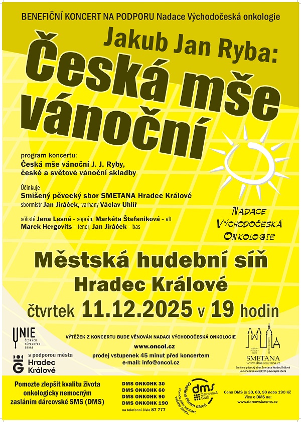 Srdečně vás zveme na benefiční koncert na podporu Nadace Východočeská onkologie, který se uskuteční ve čtvrtek 11. prosince 2025 od 19 hodin v Městské hudební síni v Hradci Králové.